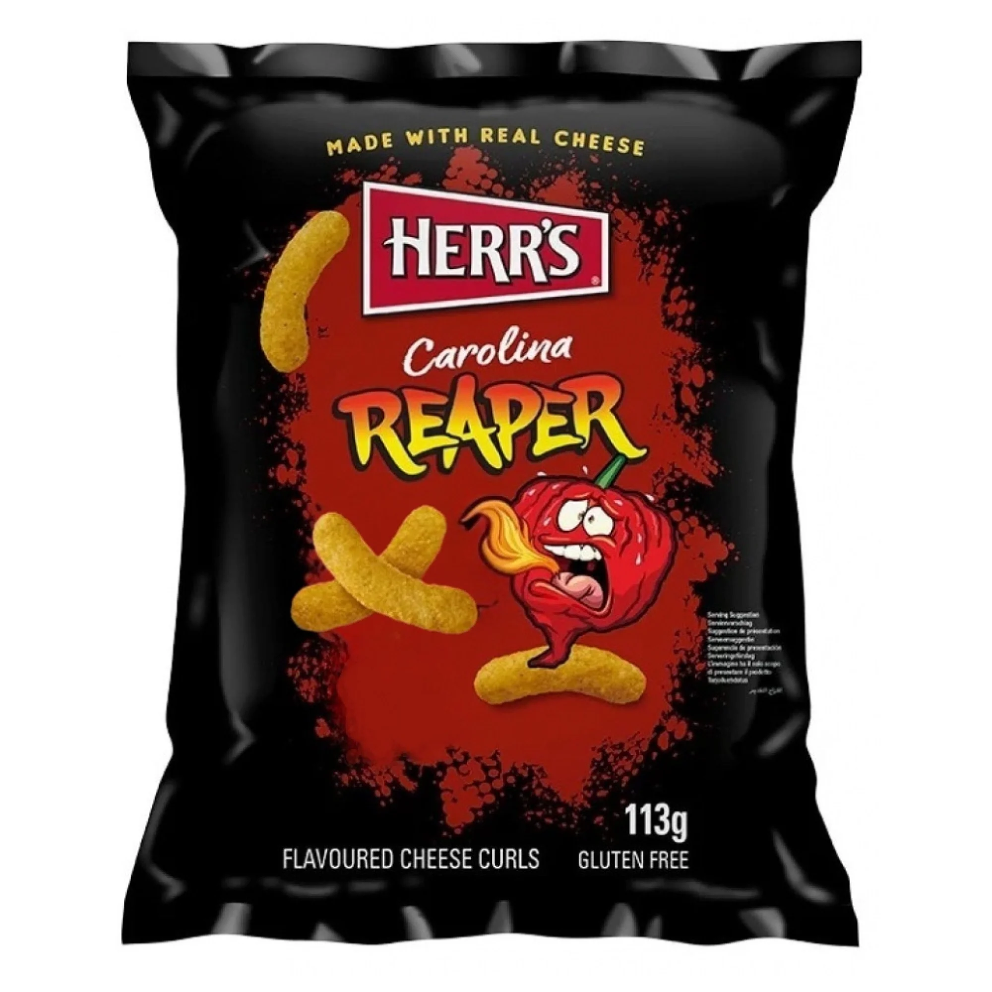 Ετικέτες: Carolina Reaper Flavored Cheese Curls 113g HERR'S