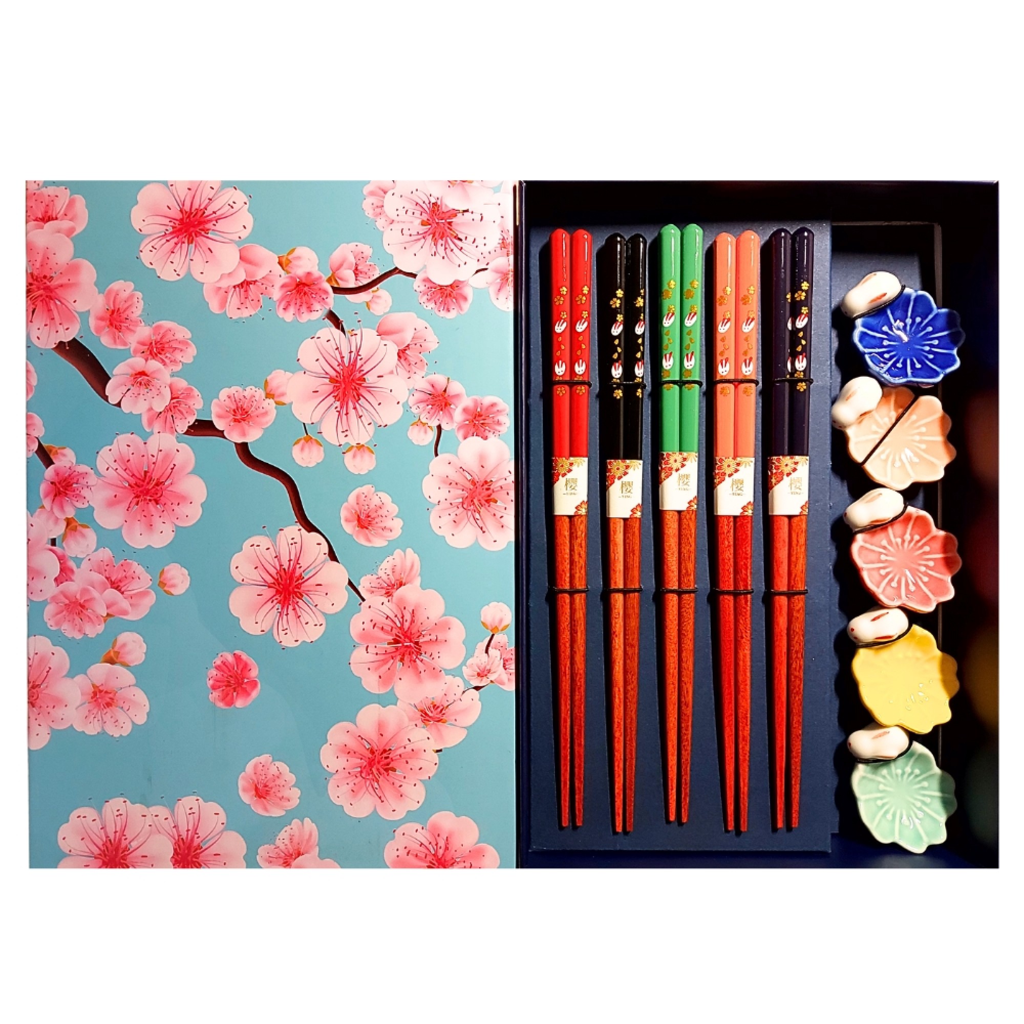 Σετ Τσόπστικς με Κεραμικό Μαξιλαράκι σε Σχήμα Άνθεων Κερασιάς, 5 ζεύγη JADE TEMPLE