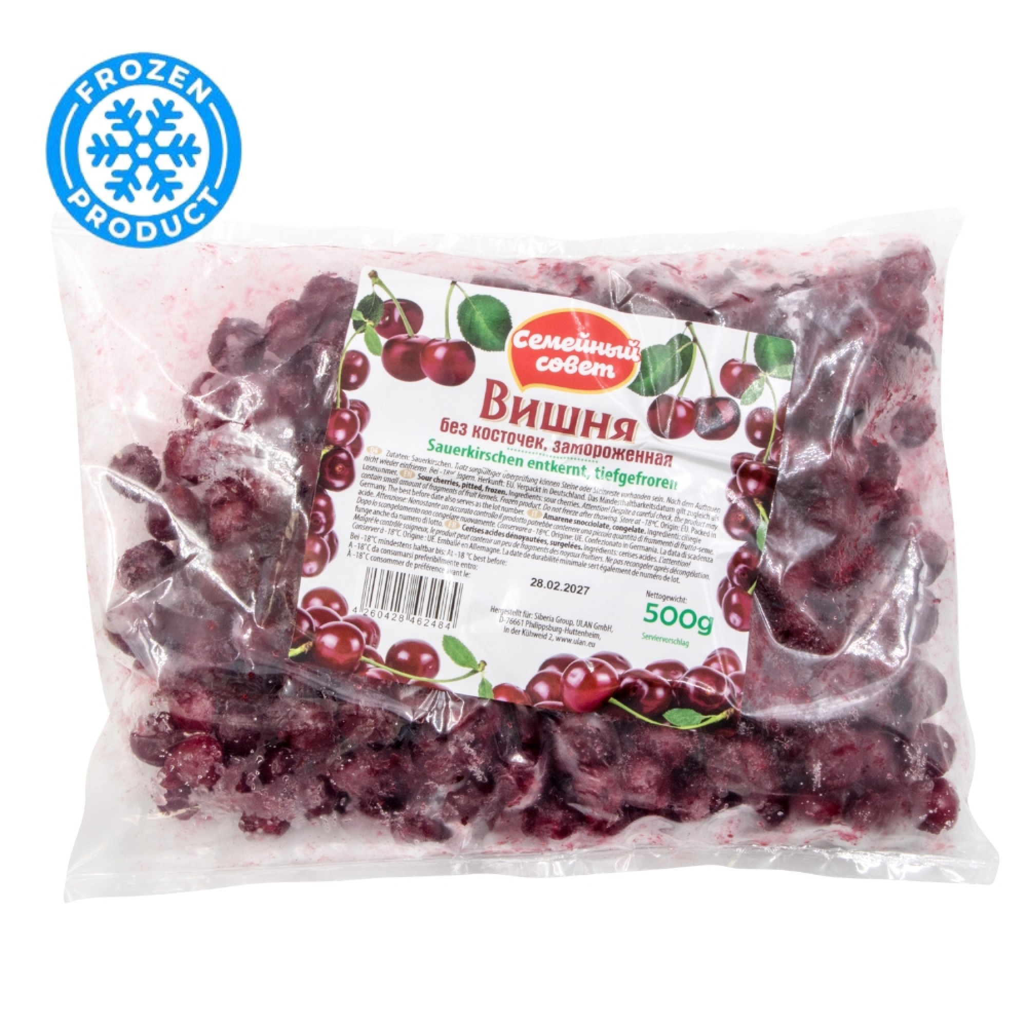 Ετικέτες: Sour Cherries Frozen - Ягоды Вишня без кост. замороженная 500g SEMEJNY SOVET
